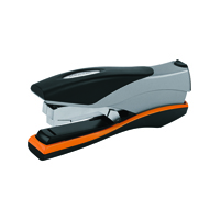 The Rexel Optima 40 stapler features a low force action for stapling up to 40 sheets of 80gsm paper. With a durable metal design and a throat depth of 70mm, the stapler has an easy to use, top loading mechanism for fast and simple refilling. It also offers jam-free, flat clinch stapling with up to 50% less effort. It comes with a pack of 1,000 Optima No. 56 staples and has a stylish silver, black and orange design.