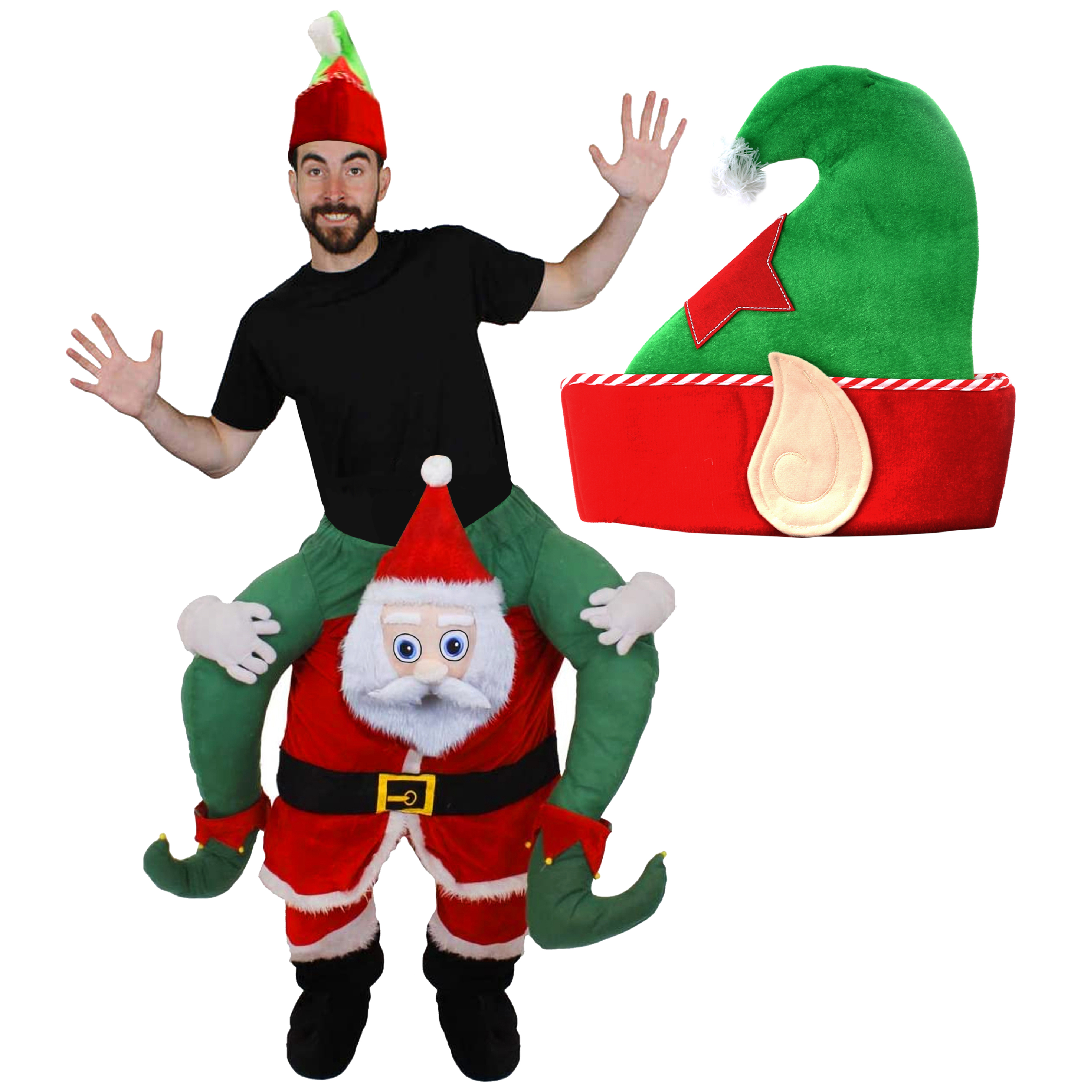 SANTA PICK ME UP COSTUME ELF HAT: Ride on down to your next Christmas Fancy Dress with the help of your best pal in our Santa Pick Me Up Costume and Elf Hat to take a load off your legs for the night ahead!