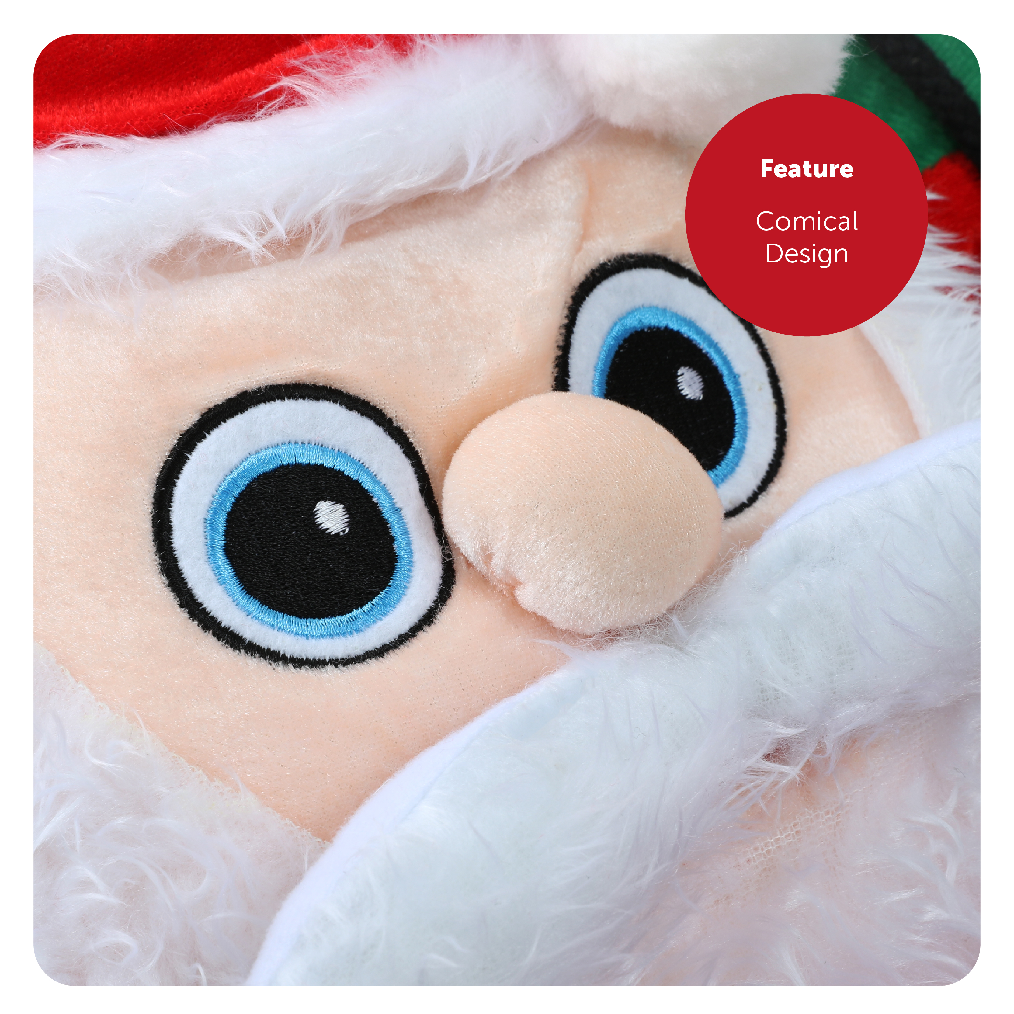 COSTUME INCLUDES: Your Costume includes a large Green Elf Hat with Red edging, a Red Star on the front, a White Pom-Pom on the tip and Elf Ears, and a quality Santa Claus Pick Me Up costume, with high-quality trousers with a soft, plush Santa head and arms, along with attached padded fake Elf legs over Santa’s Shoulders!, to complete the look!